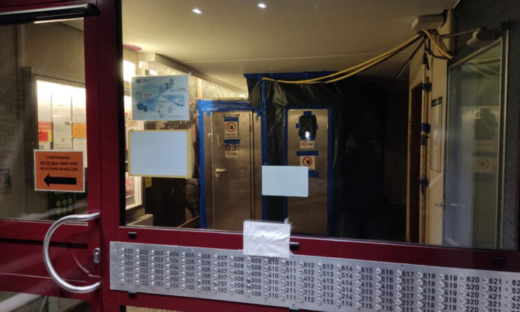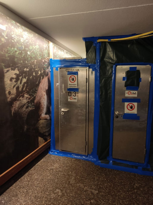 Erneut wurden großflächig Folien gespannt, diesmal sogar über die Sichtfenster der Kabinen – ein Vorgehen, das kaum nachvollziehbar erscheint. Hahnenklee-aktuell hatte bereits darüber berichtet, dass die Türelektronik dieser Kabinen nicht funktionsfähig ist. Dennoch wird der Eindruck erweckt, als müsse ein besonders sensibler oder gar kritischer Bereich abgeschottet werden.