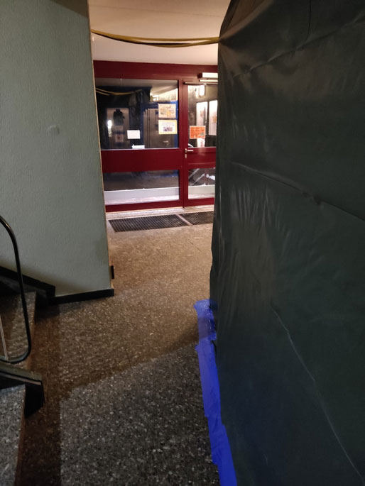 Hahnenklee. Die Strangsanierung im Haus 7 des Ferienparks Hahnenklee erreicht das Erdgeschoss – und mit ihr nehmen auch die fragwürdigen Begleitumstände weiter zu. Die bekannten Dekontaminierungskabinen wurden erneut umgesetzt, doch anstatt für Transparenz zu sorgen, wird der Bereich noch stärker abgeschirmt als zuvor.