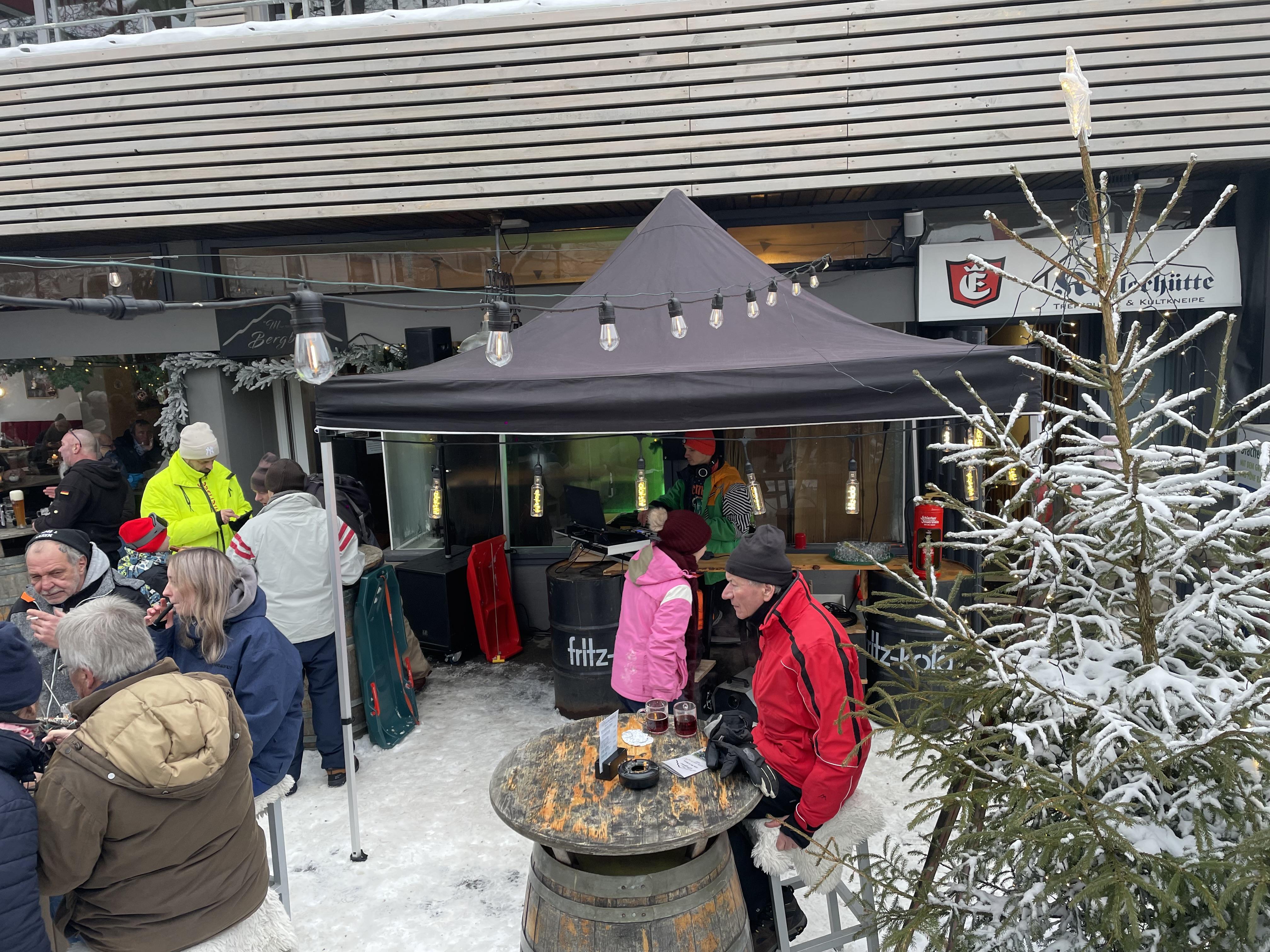 Leider spielte der Schnee im oberen Bereich der Familienabfahrt nicht optimal mit, für den Übungshang und das Böckchen reichte es jedoch absolut für Wintersportvergnügen. Nach langer Zeit war auch die Skihütte am Auslauf der Familienabfahrt wieder geöffnet. Marnies überzeugte wie immer mit freundlichem, umsichtigem und schnellem Personal – dazu einem DJ, der den Partywütigen ab 16.30 Uhr ordentlich einheizte. Ob das neue Après-Ski-Lied „ErlebnisBocksBergParty“ gespielt wurde, ist nicht bekannt – ein Ohrwurm für solche Gelegenheiten ist es aber allemal. Streaminglink HIER